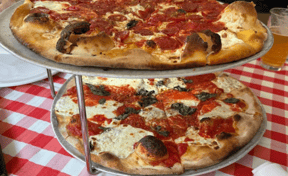 The Grimaldi's chain restaurants serve pizzas and calzones cooked in an authentic brick oven, in a casual style.