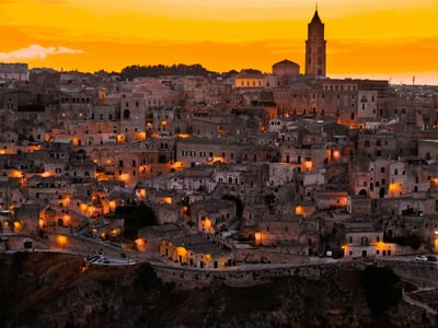 Ville classée au Patrimoine Mondial de l’UNESCO pour ses Sassi: des petites habitations troglodytes creusées dans la roche.