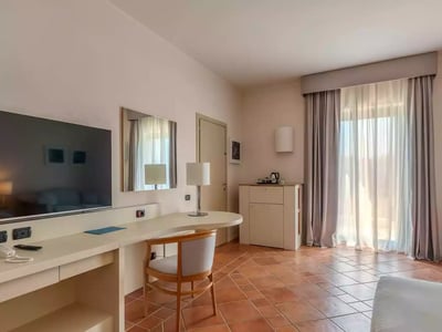 A haven of peace in the south of Puglia, between nature and Italian charm! 🌞 At MIRA Acaya Golf Resort & SPA 4 stars, la dolce vita awaits you: wake up in a spacious room overlooking the park, enjoy a lavish breakfast, and then alternate between beach, spa, and golf. As for flavors, three restaurants will delight your taste buds with healthy, gourmet, and gastronomic cuisines. Feeling like cocooning? Have your dinner delivered to your room after a busy day. Whether you prefer strolling around the fortified village of Acaya, exploring Lecce, or simply relaxing by the pool, everything is here for an unforgettable getaway under the Apulian sun. ✨